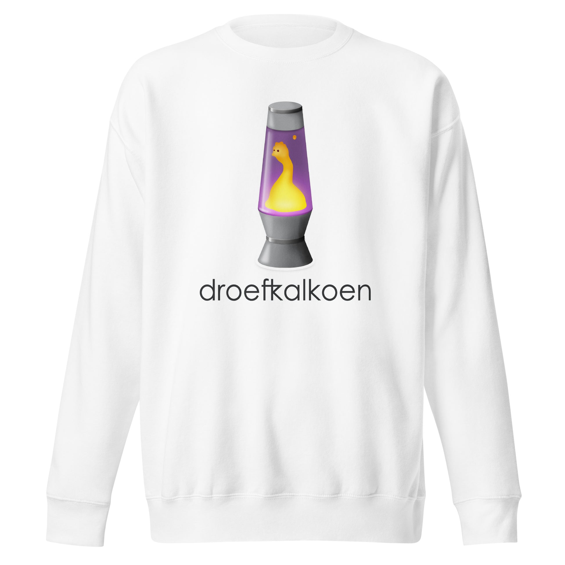 Rock a classic sweatshirt silhouette with ribbed crew neck, long sleeve cuffs, and a flat hem. Layer it up or wear it on its own for a contemporary streetwear look. The front is printed with the 'droefkalkoen' logo and accompanying text.